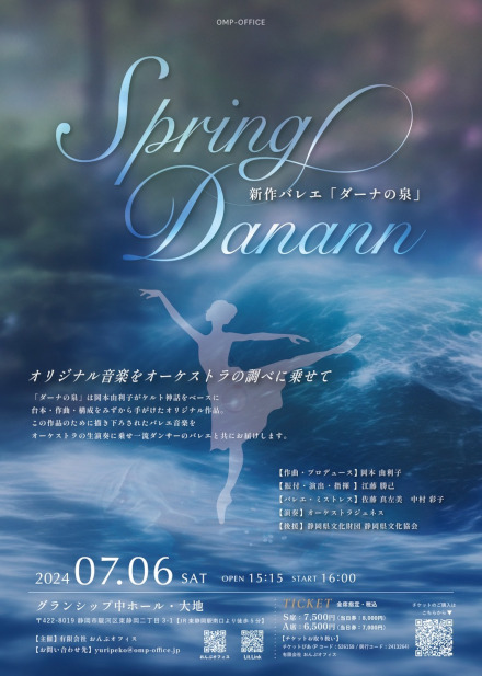 | 【バレエ「ダーナの泉」オーディション】 12月17日、静岡でのオーディションを無事終了する事が出来ました。 ご参加下さった皆様、お疲れ様でした。 ご参加頂いた事を心より嬉しく、感謝申し上げます。 【2024年の予定】 7月6日(土)バレエ「ダーナの泉」公演 静岡グランシップ中ホール"大地” 9月1日(日)「第39回こどもたちへ」紀尾井ホール 14時開演 *今年は「楽器」のお題が出ました。持ち時間2分のピアノ曲ですが、 ピアノではない、別の楽器をイメージした曲を発表します。 |